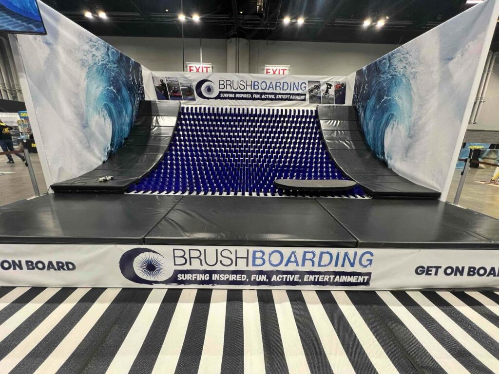 Patented BrushBoarding ramps bring a new wave of board sport, allowing the general public to enjoy a safe, fun surfing-inspired experience, no matter the age or ability.